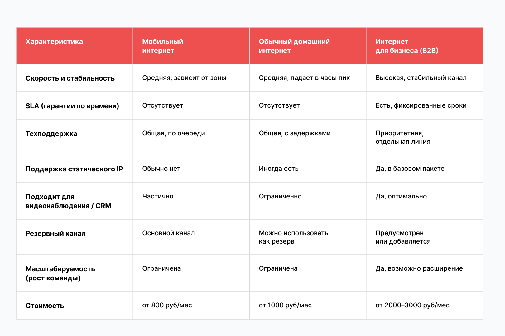 Для наглядности сравним три основных типа подключения, с которыми чаще всего работает бизнес.